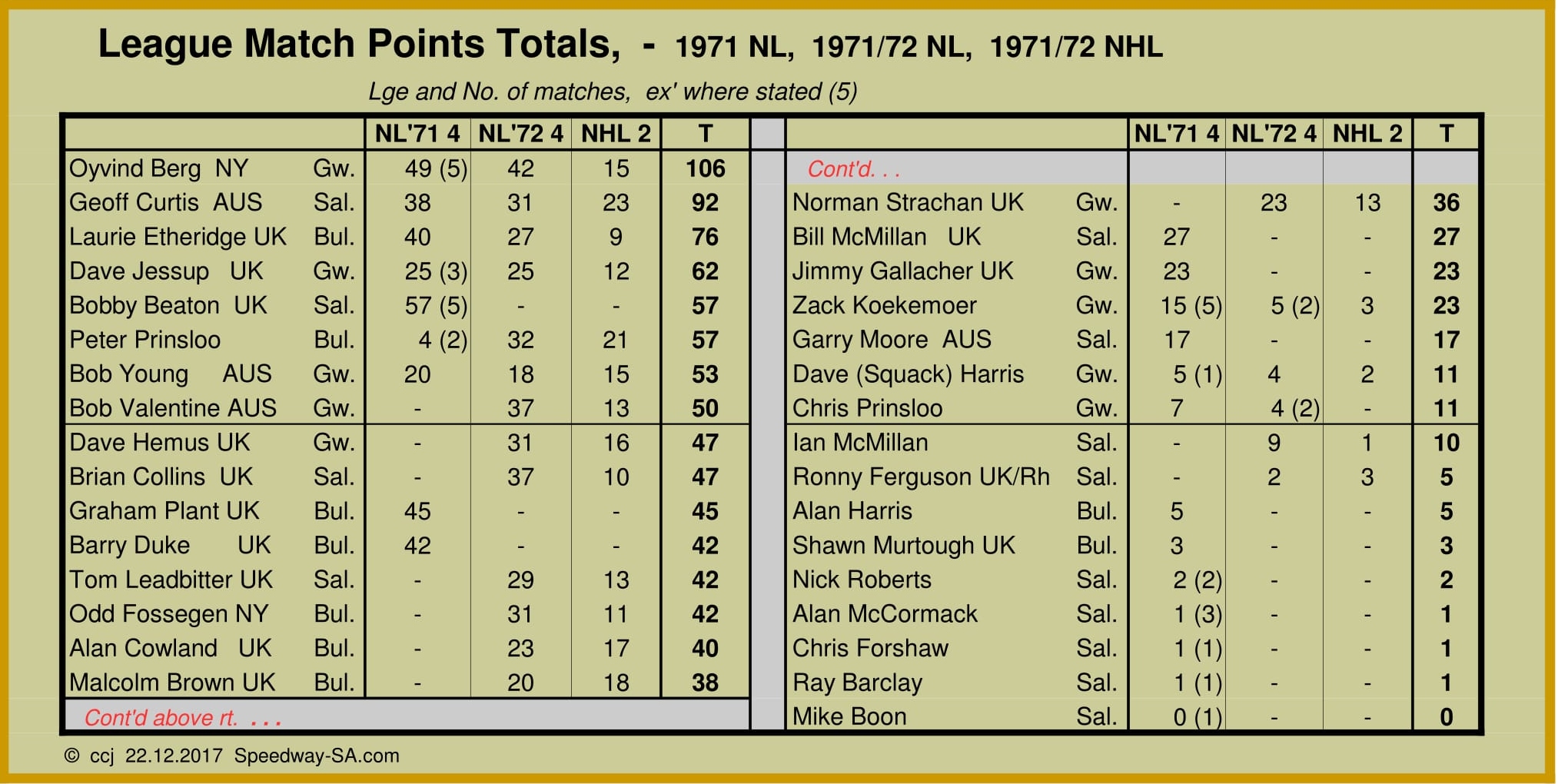 meetings. Results of these 3 leagues, and riders scores for the season, are given below.