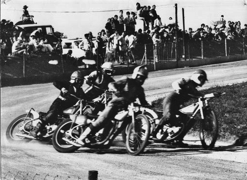 In that same year Sidecar Speedway was introduced and continued for 3, possibly 5 more years beyond the solos and into the '80s. Initiator, constructor and racer Mike Younghusband, with passenger Malcolm Carrick is thought have taken the 3-wheel championship in the first season.