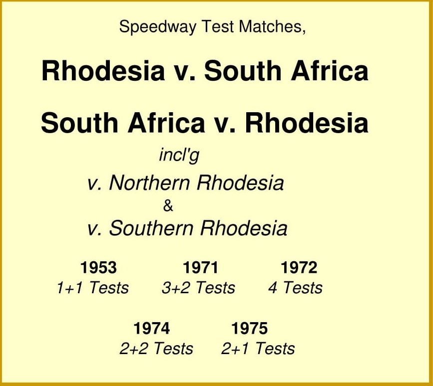 . A search for 'speedway' and 'Rhodesia' in the '80s and '90s produces only the appearance of native rider names, involved in South African and/or British speedway, e.g. Prinsloo, - Peter and nephew Deon - , Ferreira, Kent, Hayhow and Steen, all racing at some time or other in both hemispheres.