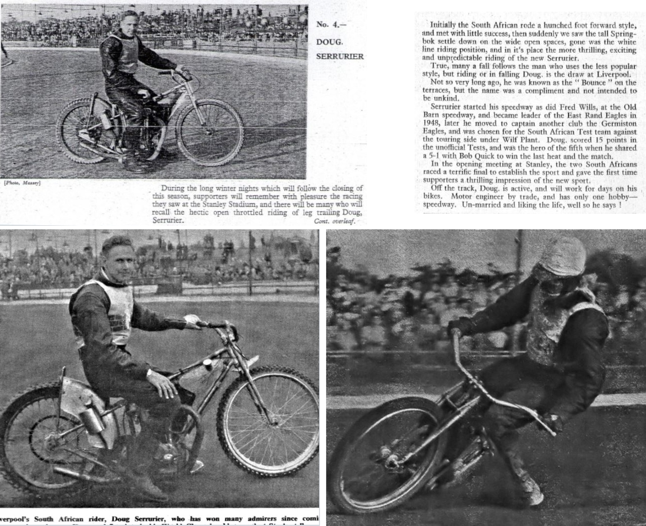 The big 440yd. Liverpool track of the Stanley Stadium, seemed to have proved an attraction to South African riders. Fred Wills rode in the Chads' post-war re-opening team match of 1949: he followed home Doug Serrurier in the Scratch Race Final, and as reward, Doug joined Fred in the team for their next return match away at Stoke!