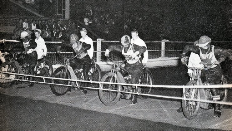 Rider Introductions, 1950-style: The Dutch Test team are introduced to the spectators at Wembley.