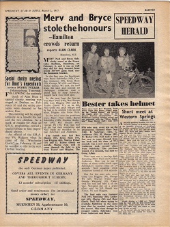 Vol.1 No.4, a magazine of the SA SRA (Speedway Riders Association) issued January 1954. The full 24 page content can be read on the Old Time Speedway website, under Links/Speedway in Print, (registration required.) Seen on the cover, in action at the Old Barn track in 1946, Bob Serrurier, and below, from within:-