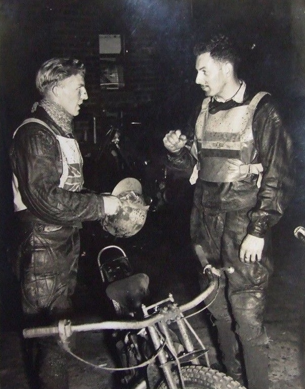 Dennis Newton, (rt.) accompanying Howdy Byford in 1957 when he rode for the East Rand Stars in the ill-fated Control Board League at the Randfontein and Pretoria tracks.