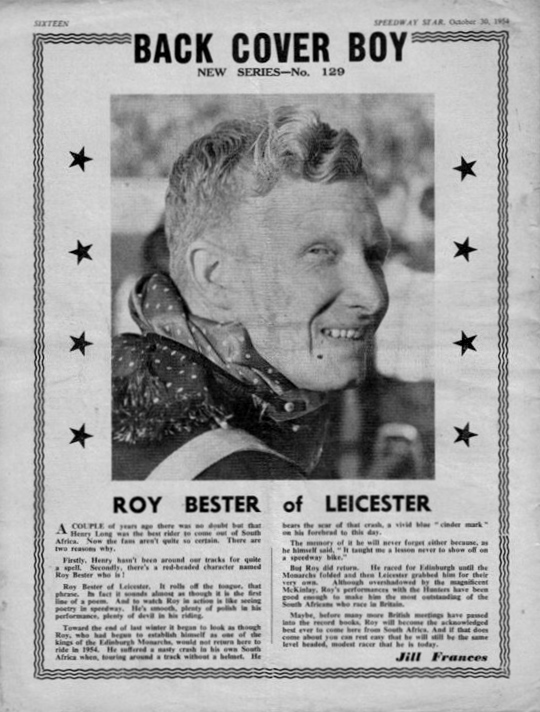 Adopted Springbok, but London-born, Reg Duval was a Chad team-mate of Wills and Serrurier in 1949, his first season of racing, and alongside Serrurier and Fuller, went on to become the Chads' top scorer in 1950. A year later he was part of the 'Overseas' Test squad that traveled to South Africa in '51/'52, and as a Germiston Star, was top point scorer amongst visitors riding in the Transvaal League. He made many subsequent trips to the Union to ride in the SA National Lge, appearing regularly throughout the '50s and '60s. He retired from racing in 1974 but continues to be semi-resident in South Africa to the present day.