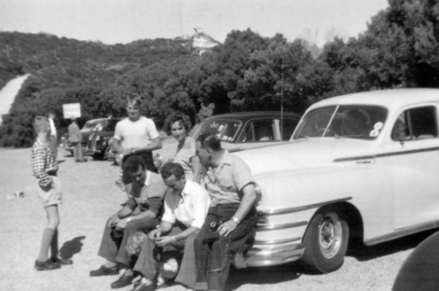 Sitting on the fender, Peter Williams, Jimmy Gooch, the driver, (a friend of Buddy Fuller.)