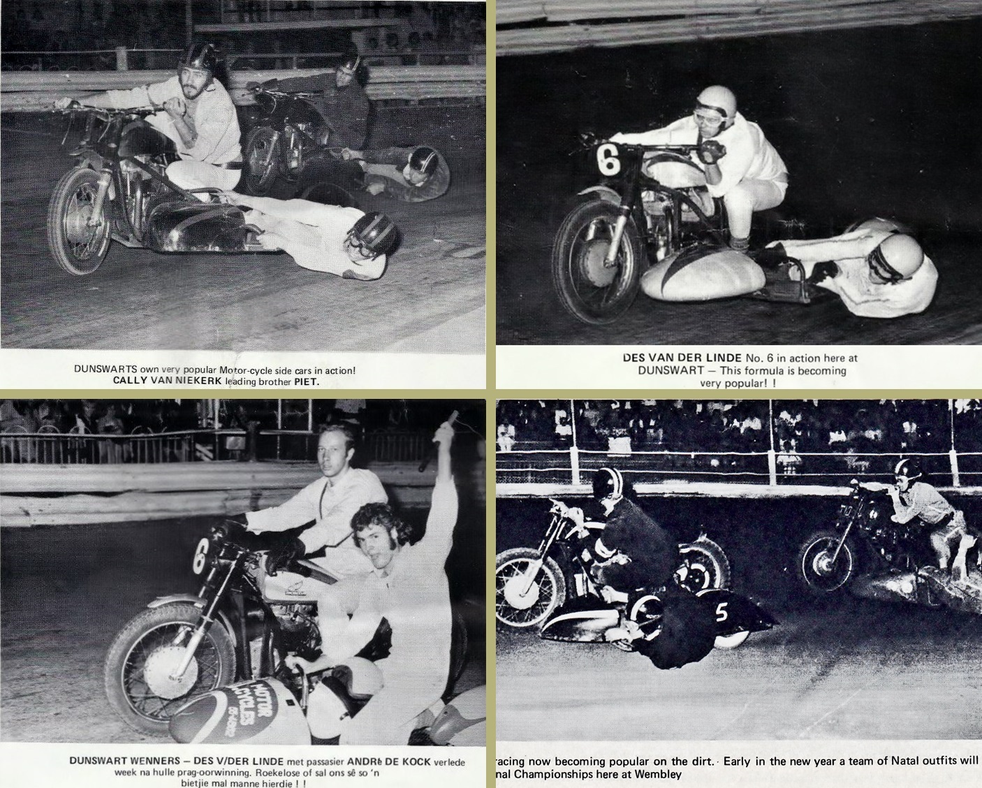 Sidecar speedway action from Dunswart, 1968-'72 (#1-3, plus #4 at Wembley)