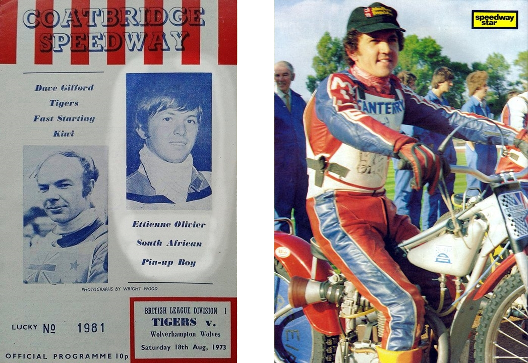 Etienne Olivier traveled to Scotland in 1973, making one pointless appearance for Division 1 team Coatbridge in August before securing a Br.Lge. Div.II. place with border-town Berwick in September of that year. In 8 league matches he averaged 4.15, capping off the season with his best performance of the year with two 7-point scores in the Bandits' October curtain-closer double header. He chose not to return to UK the following year.