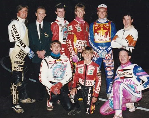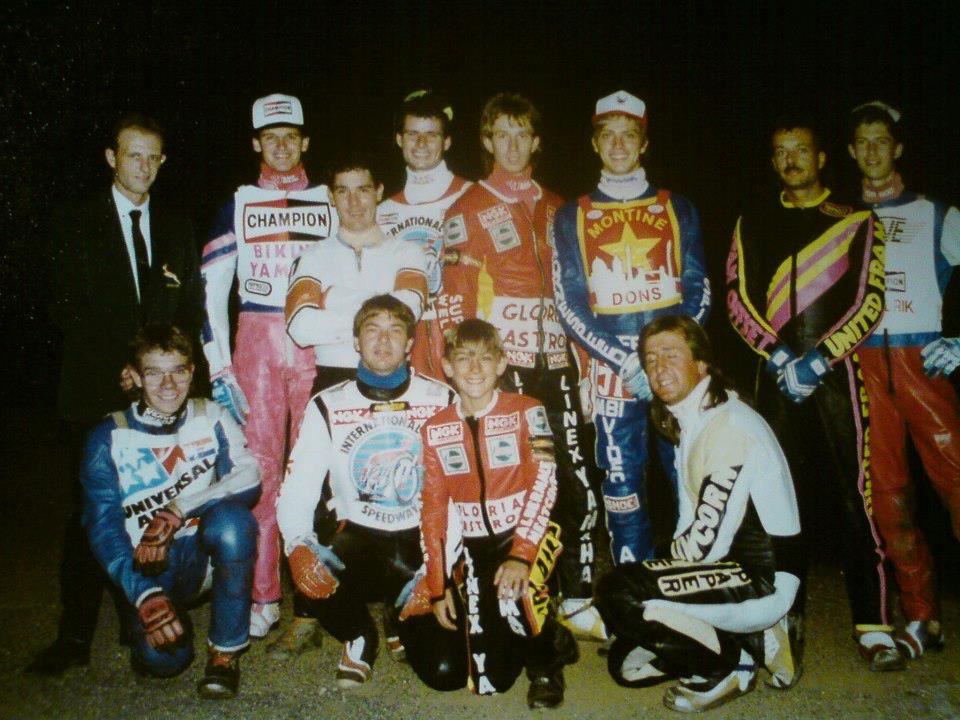 This photograph depicts the gathering of speedway riders at the Corobrik track in that year.
