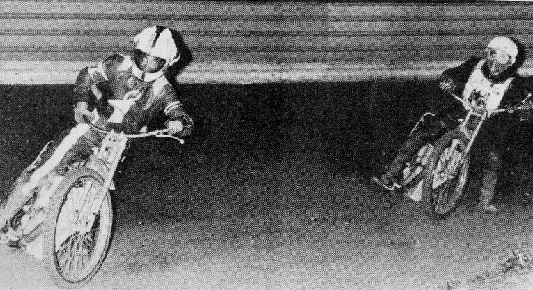 Dennis Newton leads Jimmy Gallacher on lap 2 of the Final. Dennis went on to win this race,