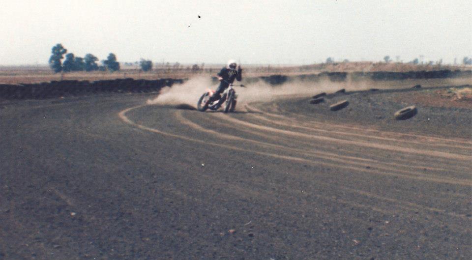 below: - a rare shot of the Xanadu training track, 1980's - John Robertson in action.