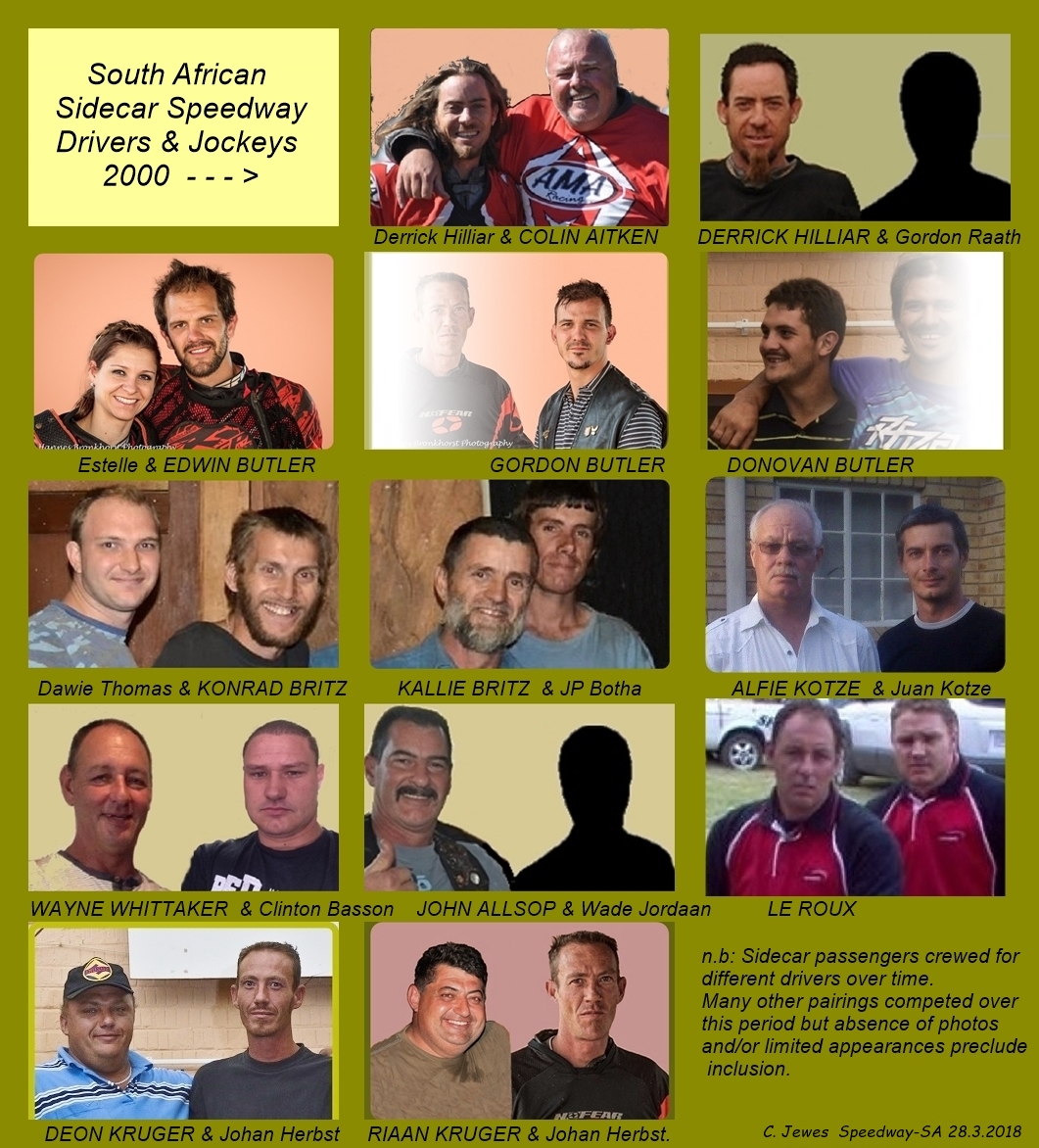 n.b: Sidecar passengers crewed for different drivers over time. Many other pairings competed over this period but absence of photos and/or limited appearances preclude inclusion. (For Solo rider's collage see Gallery p4.)