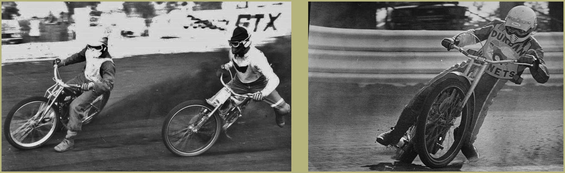 15-yearold Wayne Coughlan on a Jap in his first season of 1976, up against Vic Pretorius at Daggafontein, Springs. Later, Jawa-mounted for Durban Hornets.