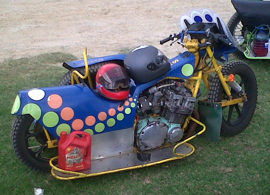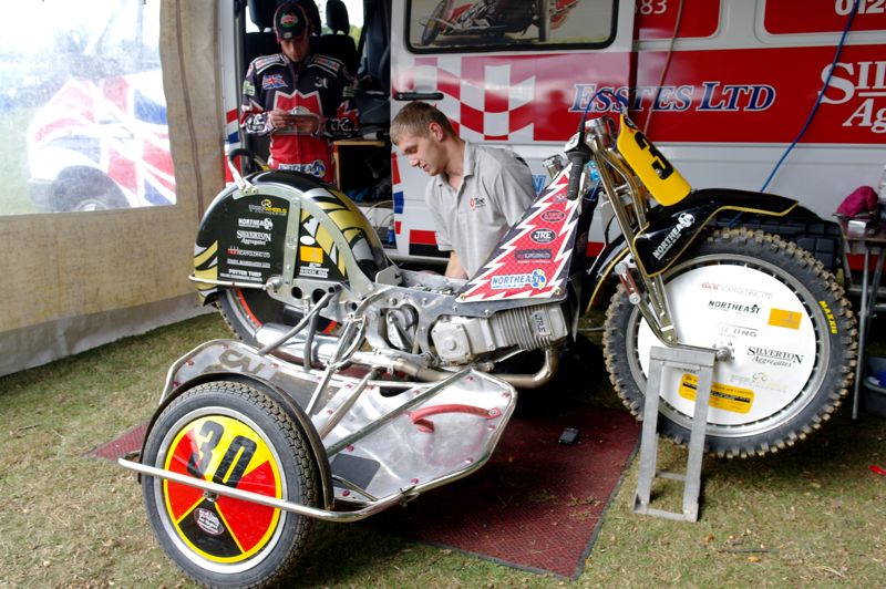 At Walkerville everyone is familiar with the big boys' 1000cc combinations but probably less so with the alternative class of 500cc chariots that can be seen on the same programme in Europe. On continental Long Tracks, - sandbahn and grasbahn - , and at UK Grass Track meetings (plus occasional speedways,) it's not uncommon to feature races for both 500cc and 1000cc classes on the same bill.