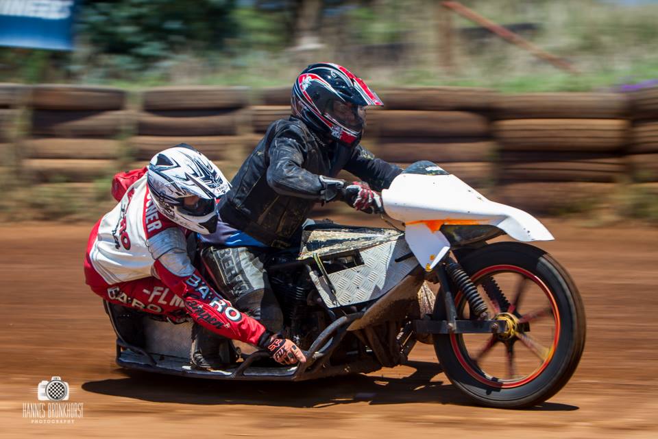 Gio Nunes took the first round of the 2013 'Dot Engineering' S.A. National Championship from the field of solo riders at Walkervile on Sunday, while Gordon Butler, partnered by Johan Herbst, did likewise in the Sidecar class. Nunes and 'DJ' Devine took a point off each other, but DJ also lost out to kid brother Brad in Ht.10, denying him a chance of the top slot. Husband & wife Edwin & Estelle Butler were runners up amongst the 3-wheelers.