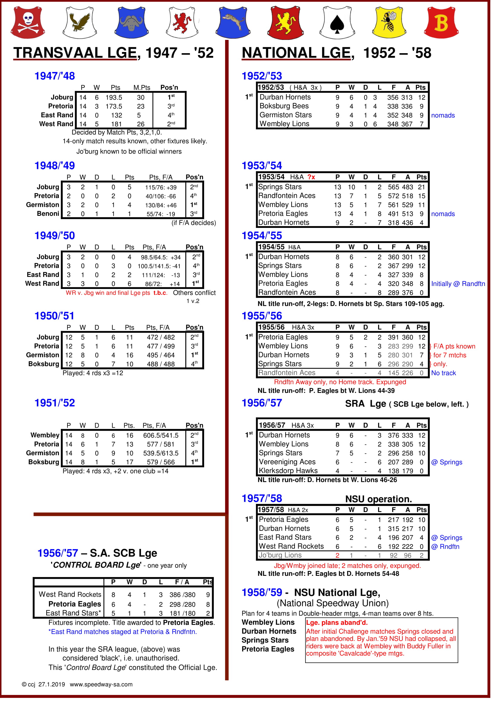 Archive speedway NEWS from Walkerville and S.Africa, - click on year :