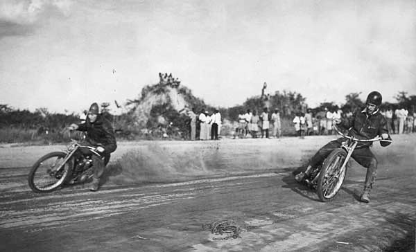 Local (Welsh-born) rider Bert Clarke in practice, Northern Rhodesia's first speedway convert.