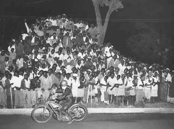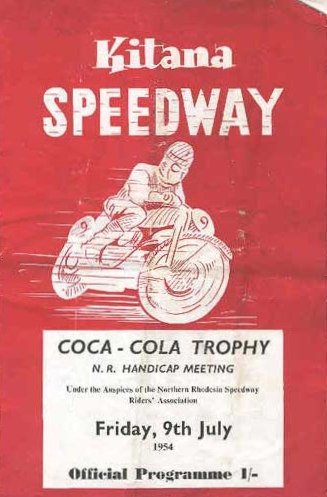 The first speedway meeting in the Rhodesias was at the Kitana Stadium, Kitwe, in Northern Rhodesia, present-day Zambia, on July 16th 1953 when Bob Serrurier won the Northern Rhodesian Championship. (A 1954 programme is shown left.) It was September '53 before Bulawayo saw its first speedway, a 'Southern Rhodesia v. South Africa' Test Match, although it was this land south of the Zambezi, today's Zimbabwe, that was to see the greater development of the sport.